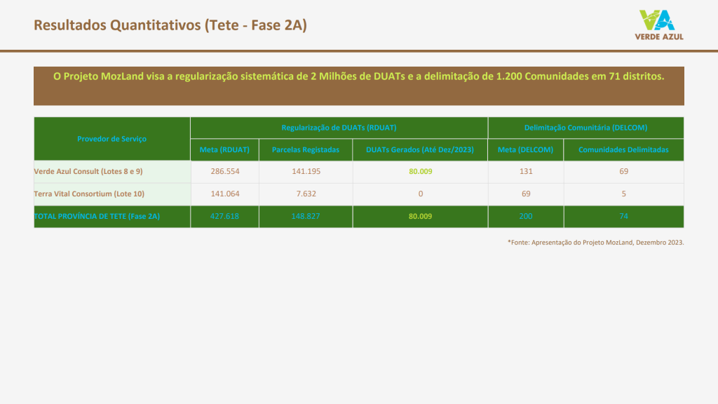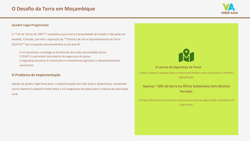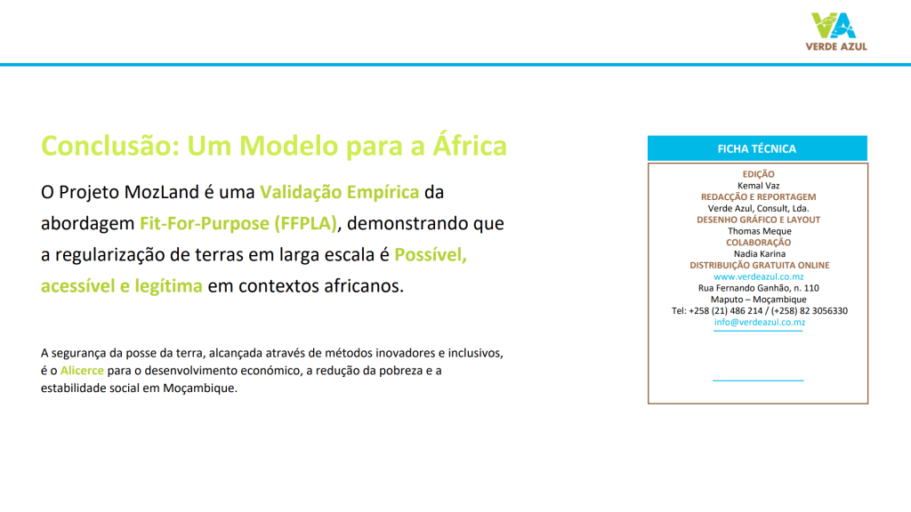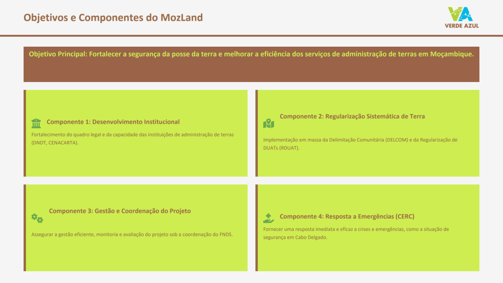 MOZLAND – PROJECTO DE ADMINISTRAÇÃO DA TERRA EM MOÇAMBIQUE IMPLEMENTADO PELA VERDE AZUL
